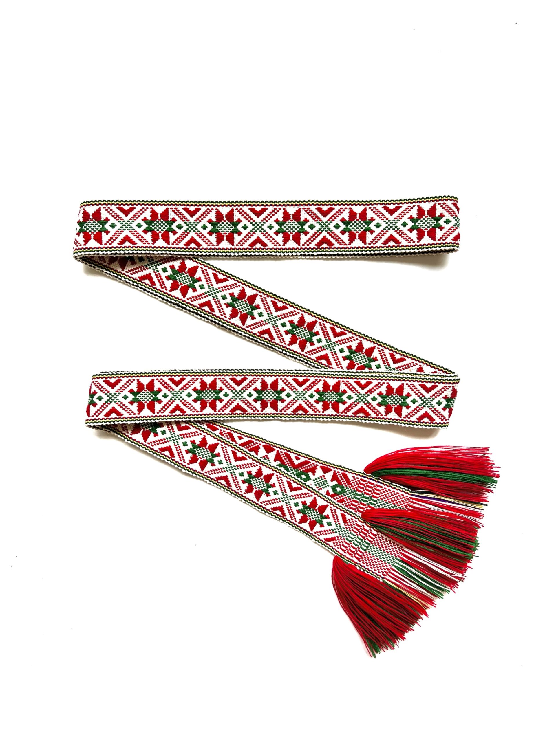 Austa tautinė juosta, skirta ryšėti prie dzūkiško tautinio  kostiumo.